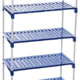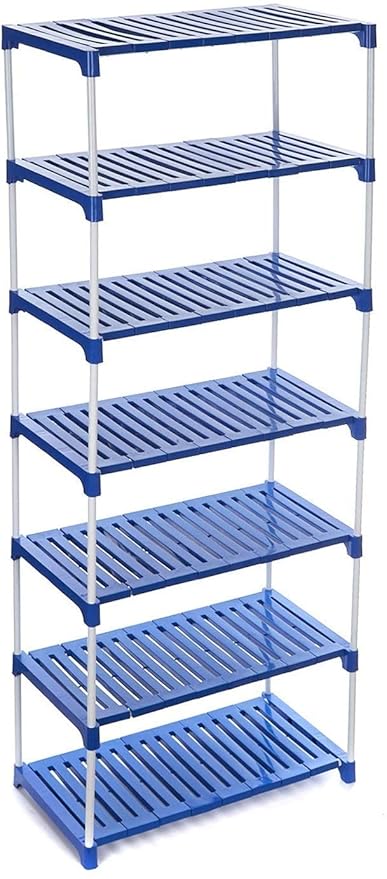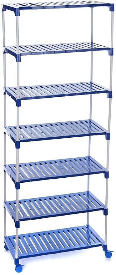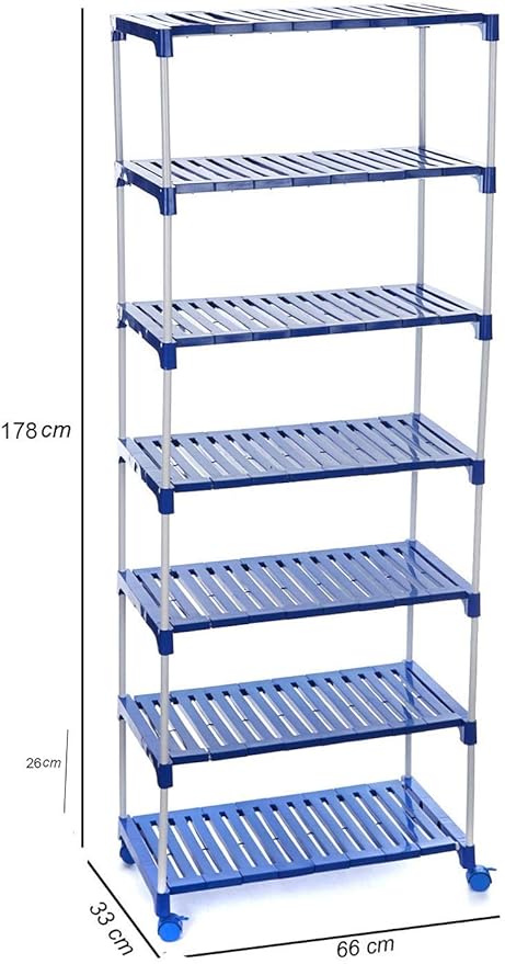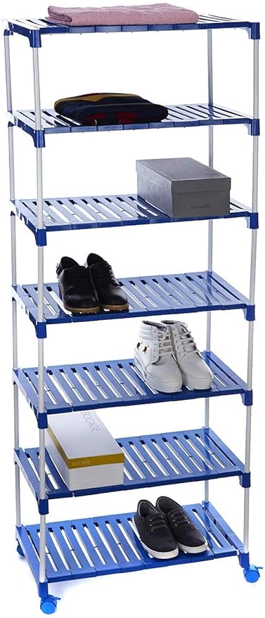 Dhani Creation Blue & Silver Multipurpose Organizer Foldable Plastic Steps and Powder Coated Rods Shoe Racks/ Clothes/ Books/ Utility Rack with Wheels (3 Step)