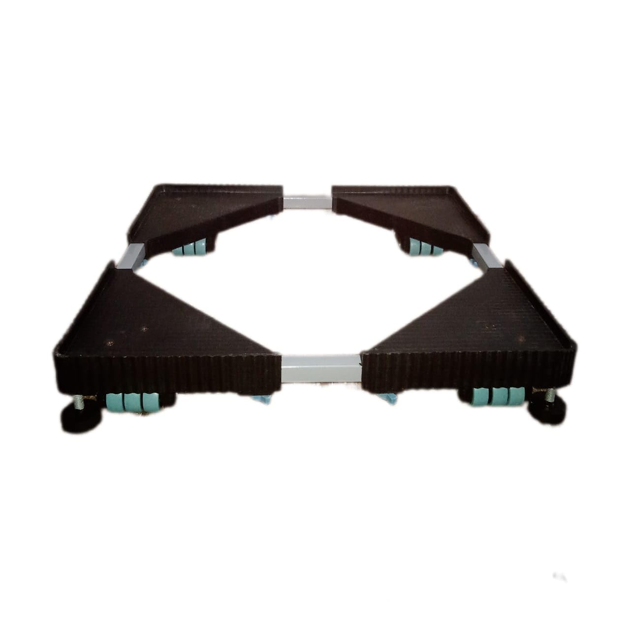 Details: Dhani Creations Washing Machine Trolley, Dishwasher Stand, Refrigerator Trolley/Stand with adjustable size with 24 quality wheels Washing Machine Trolley The Heavy Premium Adjustable Trolley & Stand. This Trolley / Stand can support up to 450 kg & Blue wheels stand can support up to 420 kg Multi-Purpose Use : – Top Load Washing Machine, Top Load, Fridge/Refrigerator Stand/Trolley, Dishwasher Stand. Color : – Atteactive Black & Metal Pipes.
