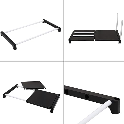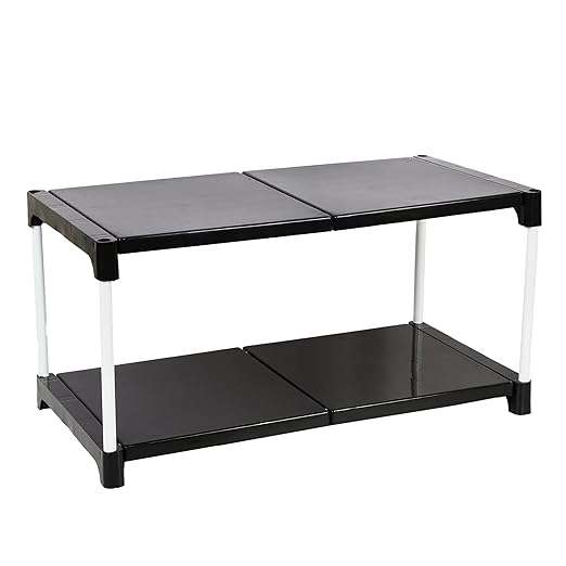 Dhani Creations Multipurpose Portable Folding Rack for Shoes, Clothes, Books & Utility Rack, Shoe Rack Storage Organizer White Steel Frame with Black Plastic Shelves (2 Steps)